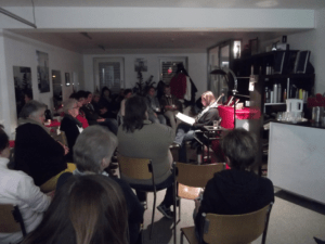 Gut zwanzig interessierte BesucherInnen trotzten dem heftigen Schneefall und trudelten kurz vor 19:00 Uhr im Coiffeur-Salon MaeX‘s in Degersheim ein.