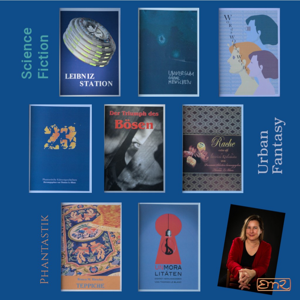 Und dann gibt es ja auch noch die mittlerweile 40 Kürzestgeschichten, die ich bisher für die Phantastischen Miniaturen der Phantastischen Bibliothek Wetzlar geschrieben habe. Da experimentiere ich gerne mal mit verschiedenen Genres oder Erzählperspektiven. Ich zähle die Miniaturen, die ich bisher geschrieben habe, hier mal nicht separat auf (das wäre dann doch zu umfangreich) und unterteile sie auch nur grob in Science Fiction und „querbeet durch die Fantasy“.